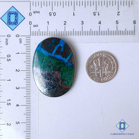 Natural Azurite With Dioptase Gemstone Oval Cabochons 34*24*5mm from Namibia available for sale
