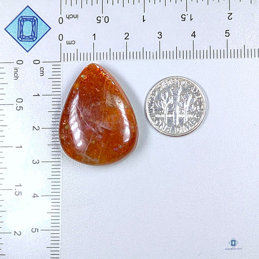 When it comes to gemstone grading, cabochons4sale stands for top quality 4 Csโcolor, carat, cut, and clarity. For African sunstone, color ranges from pale peach to deep reddish-orange, with some rare greens and bicolors. The Schiller effect, that is, the glitter caused by light reflecting off copper inclusions, is the hallmark of high-grade stones. A natural, high-quality African sunstone cab should have an even body tone, visible sparkle from multiple angles, and minimal cracks. Cabochons can take on any shape, from freeform to fancy cabochons to calibrated ovals to rose-cut gemstone cabs to even fully faceted stones.