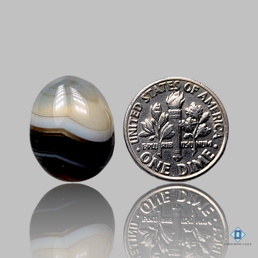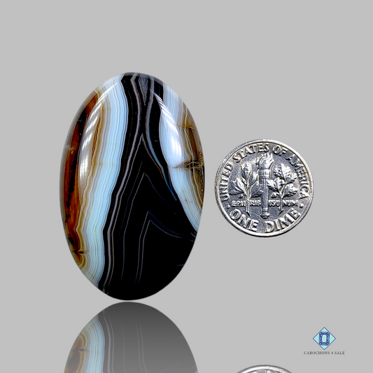 When we talk about Banded Onyx gemstone cabochons, quality is everything. At cabochons4sale, we follow the 4 Cβsβcolor, carat, cut, and clarityβto determine the grade of each stone. We like banded Onyx gem cabochons to have distinct bands that are evenly spaced, with good saturation in the darker bands and creamy purity in the lighter ones. The contrast is what makes them pop in jewelry designs. Color flows from black and white to warm browns, reds, and greens at the end of the color wheel. Some banded onyx freeform cabochons will even have semi-translucent layers, which can grant them an almost mystical quality when light penetrates the layers.