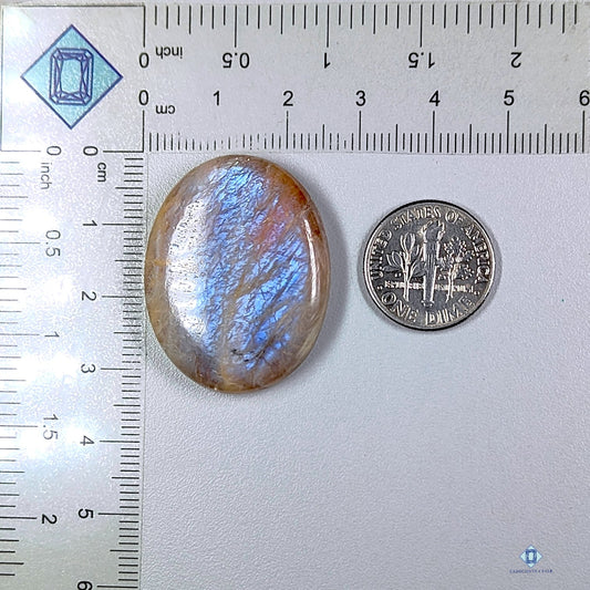 Belomorite gemstone is known for its pearly shimmer and soft glow. It is a types of moonstone. It showcases a similar adularescence but display a unique pinkish-orange fire. It is also known as a spiritual gemstone. Natural Belomorite cabochons are cherished for its strong connection to intuition, creativity and emotional growth. The Belomorite stone benefits include enhancing self-awareness, creativity, promoting inner harmony, spiritual growth and encouraging new beginnings.