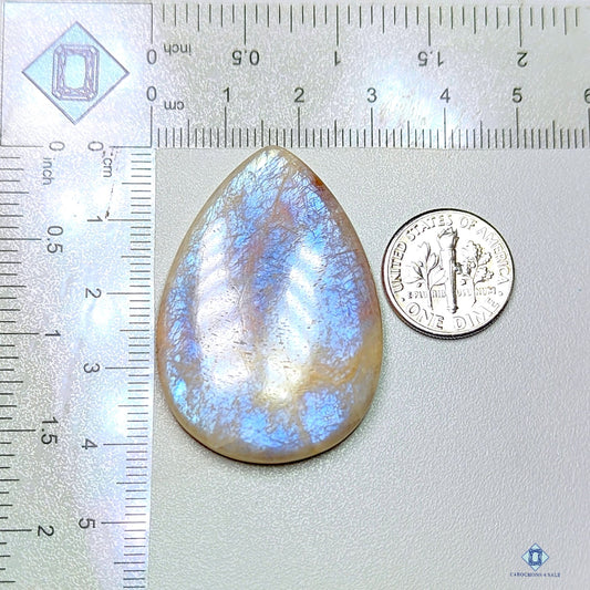 Belomorite gemstone is known for its pearly shimmer and soft glow. It is a types of moonstone. It showcases a similar adularescence but display a unique pinkish-orange fire. It is also known as a spiritual gemstone. Natural Belomorite cabochons are cherished for its strong connection to intuition, creativity and emotional growth. The Belomorite stone benefits include enhancing self-awareness, creativity, promoting inner harmony, spiritual growth and encouraging new beginnings.