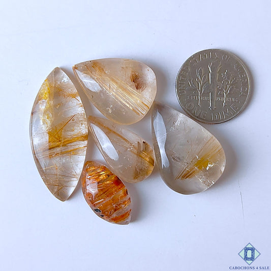 Copper Rutile Quartz Pear Cabochons