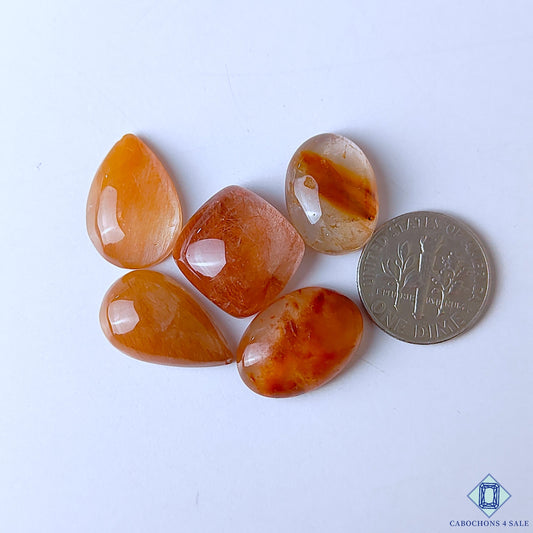 Natural Copper Rutile Quartz Gemstone Pear Cabochons 30*30*5mm from Brazil available for sale
