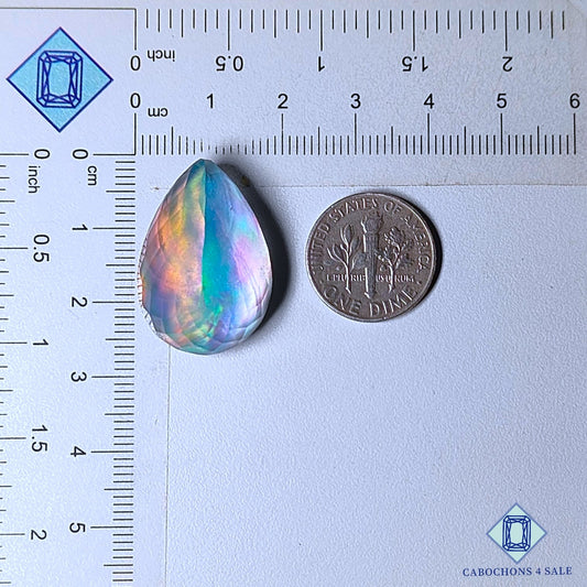 Aurora Opal + Crystal Quartz Doublet Gemstone Pear Doublets 35*28*12mm from available for sale