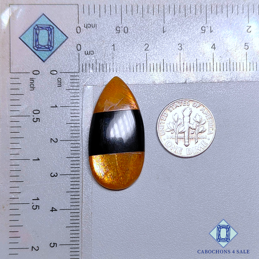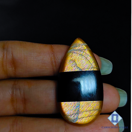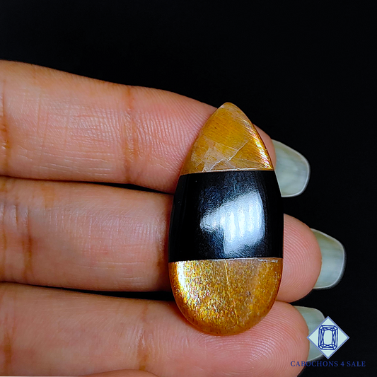 Meteor Shower Rainbow Lattice Sunstone + Black Onyx Doublets Pear Doublets