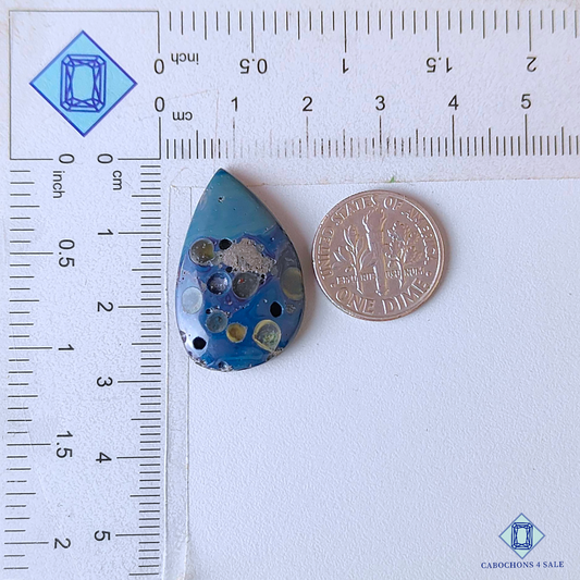 Natural Blue Labradorite Gemstone Pear Druzy 30*23*6mm from Madagascar available for sale