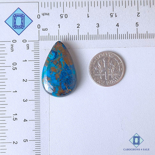 Natural Azurite Chrysocolla Gemstone Pear Cabochons 37*27*7mm from Peru available for sale