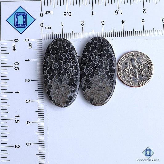 Natural Fossil Coral Gemstone Oval Pairs 25*14*4mm from Indonesia available for sale