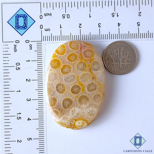Natural Fossil Coral Gemstone Oval Cabochons 38*25*5mm from Indonesia available for sale
