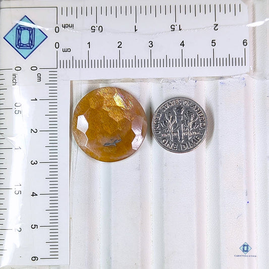 The reverse side of the unit, frosted with a dazzle selection, is radiant and shining machine-cut Rainbow Lattice Sunstone gems. Its reflective internal inclusions represent clarity and enlightenment, which is why the stone is so popular among those in search of inner peace. Many think that the act of wearing these cabochons or meditating with them is for the purpose of dispelling negative energy, attracting abundance, and promoting emotional stability.