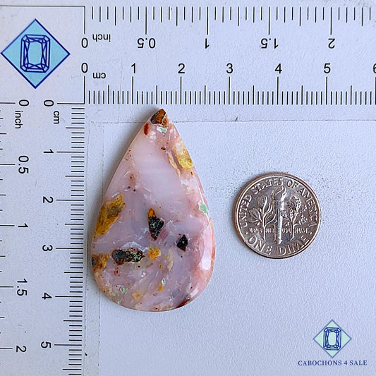 Natural Pink Opal Gemstone Pear Cabochons 41*25*4mm From Peru available for sale