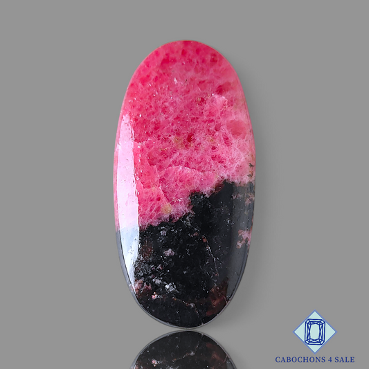 - Known for its deep, rosy pink body and black manganese webbing. Often used for handmade natural rhodonite cabochons.