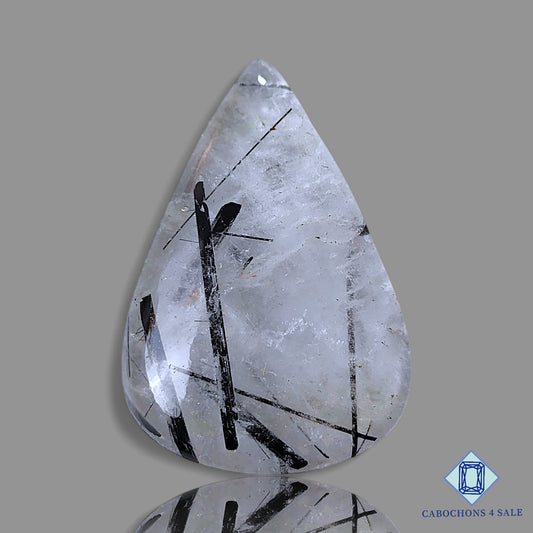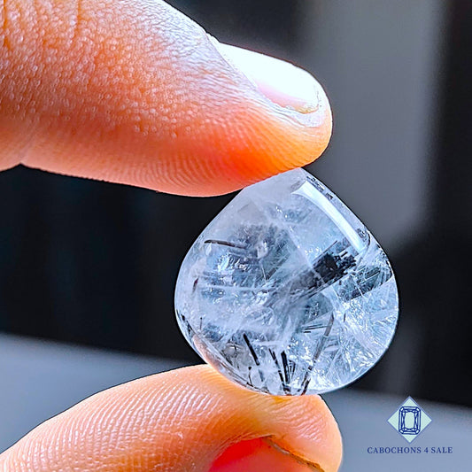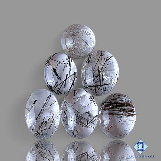 The name “Rutile” comes from the Latin word rutilus, the meaning of this word is “reddish.” But in Black Rutile Quartz, the thin lines inside the stone look black or silver-grey instead. When we check the quality, it depends on how the quartz clarity is, and also how the black lines are spread inside it. Top-quality stones have clear quartz with fine black lines that look neat and shiny. Some stones have thick lines that look like a spider web or lightning, and people like those very much. At Cabochons4sale, before delivering, we check every stone properly to make sure it is AAA-grade quality and well-polished.