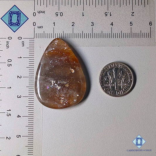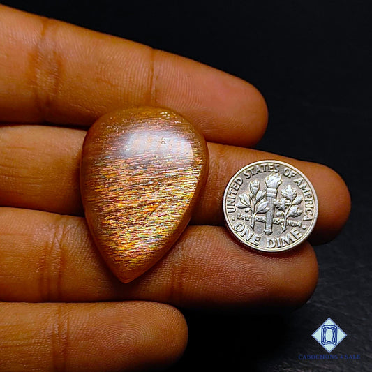 Natural Peach Moonstone with Sunstone Gemstone Pear Cabochons 31*26*6mm from Madagascar available for sale