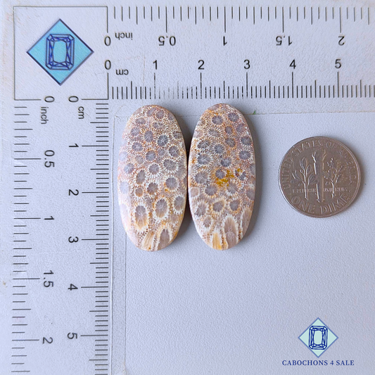 Natural Fossil Coral Gemstone Oval Pairs 25*14*4mm from Indonesia available for sale