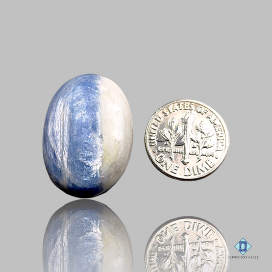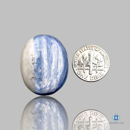 I have to say, I really love blue kyanite quartz cabochons. They have such an easy-going feeling to them. When you see them initially, you might think to yourself, ‘Well, that is not the brightest blue I have seen,’ and that’s the reason I appreciate them so much. The stone has a beautiful blend of soft sky blue with some ocean tones in a subtle shade of depth, along with natural streaks that appear to be little brush strokes. The additional streaks are not flaws at all; they are simply part of the stone's personality and create a quality unique to each cabochon.