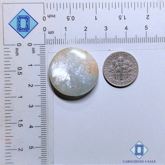 Natural Peach Moonstone with Sunstone Gemstone Round Cabochons 32*6mm from Madagascar available for sale