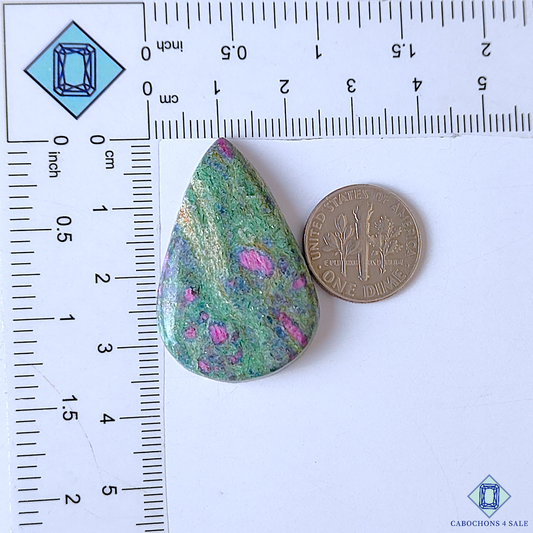 Natural Ruby Fuchsite Gemstone Pear Cabochons 54*39*6mm from India available for sale
