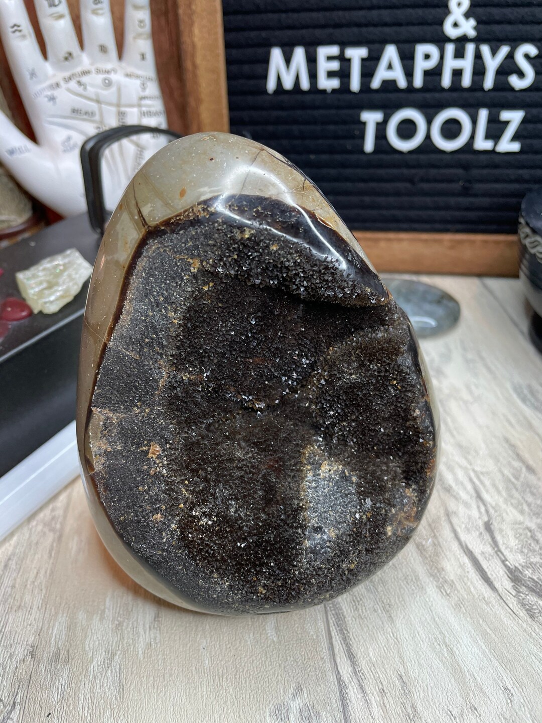 This is the point where the narrative becomes intimate. Septarian, the “earth,” has already established a reputation in the metaphysical world—it is regarded as a grounding, protective stone. It will be seen among the recommendations for reducing anxiety, making people more talkative and patient. The combination of different minerals is thought to produce a balancing power, and thus people claim the stone has three different energies: the tenacity of limestone, the stability of aragonite, and the comfort of calcite