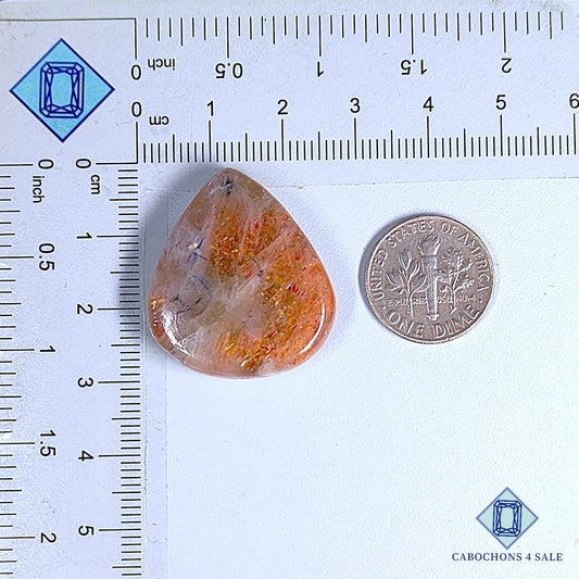 Natural Tanzanian Confetti Sunstone Gemstone Pear Cabochons 28*25*7mm available for sale