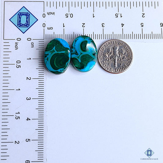 Malachite Chrysocolla Pear Pairs 16*13*3mm
