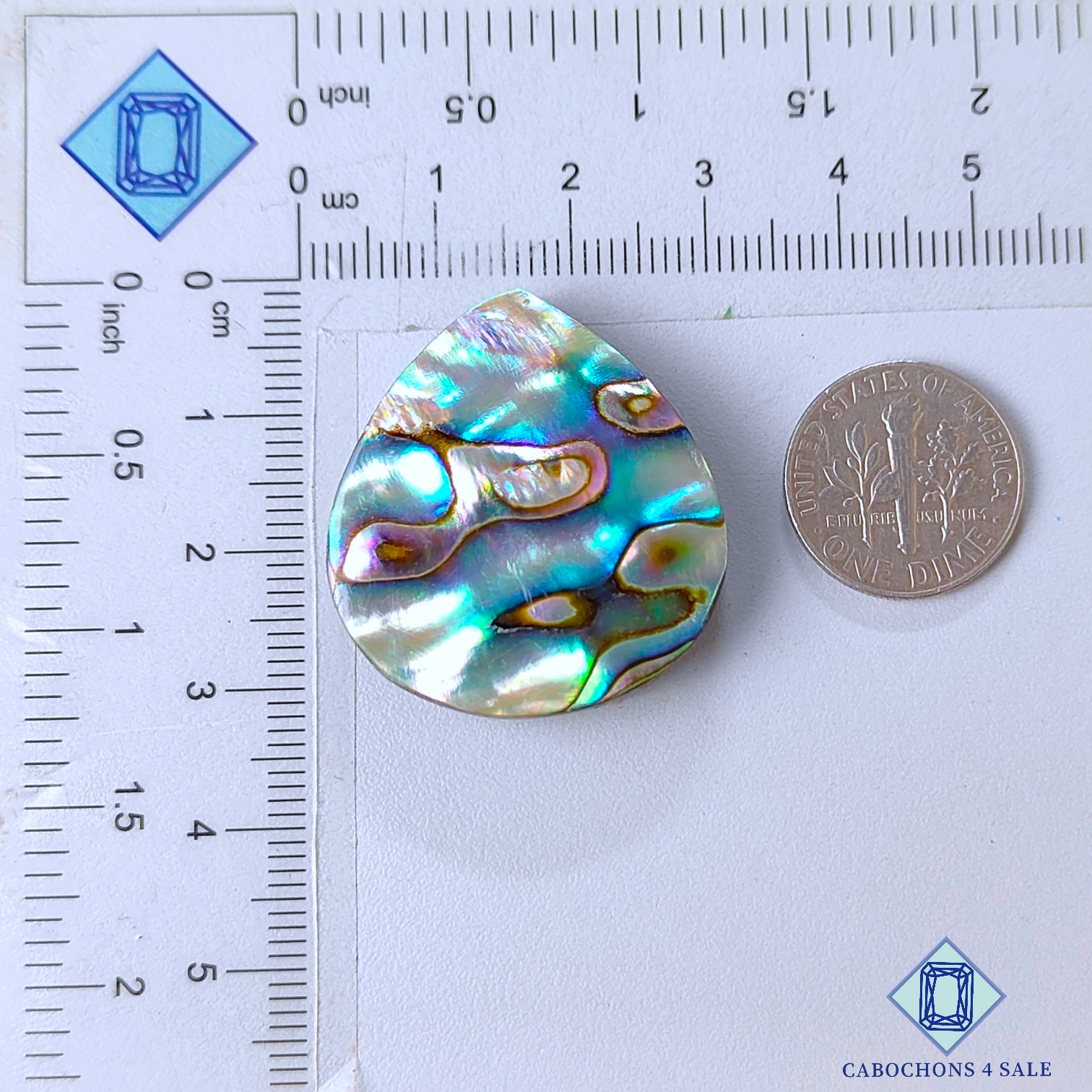 Swipe images to see stone with Dimension chart. This is a Abalone Shell gemstone. The Product is a natural , Pear, Opaque. Abalone Shell gemstone in Green color with the  size of 30*28*7mm. Clarity of this Abalone Shell Piece is  Opaque. The Product is available exactly same shown in the picture: 1 piece Pear Cabochons Abalone Shell certified for the price listed above.