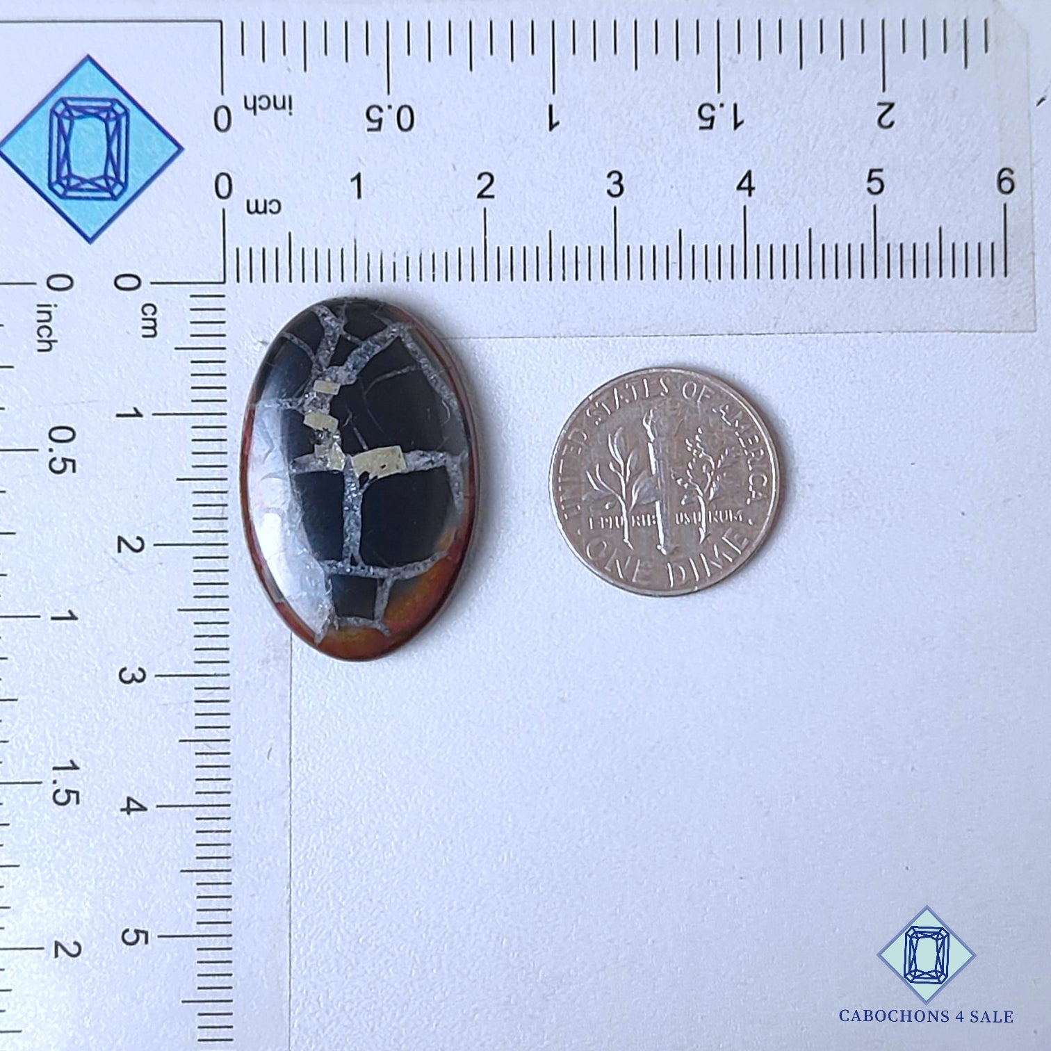 Swipe images to see stone with Dimension chart. This is a Black Septarian gemstone. The Product is a natural , Oval, Opaque. Black Septarian gemstone in Black color with the size of 28*18*4mm. Clarity of this Black Septarian Piece is Opaque. The Product is available exactly same shown in the picture: 1 piece Oval Cabochons Black Septarian certified for the price listed above.
