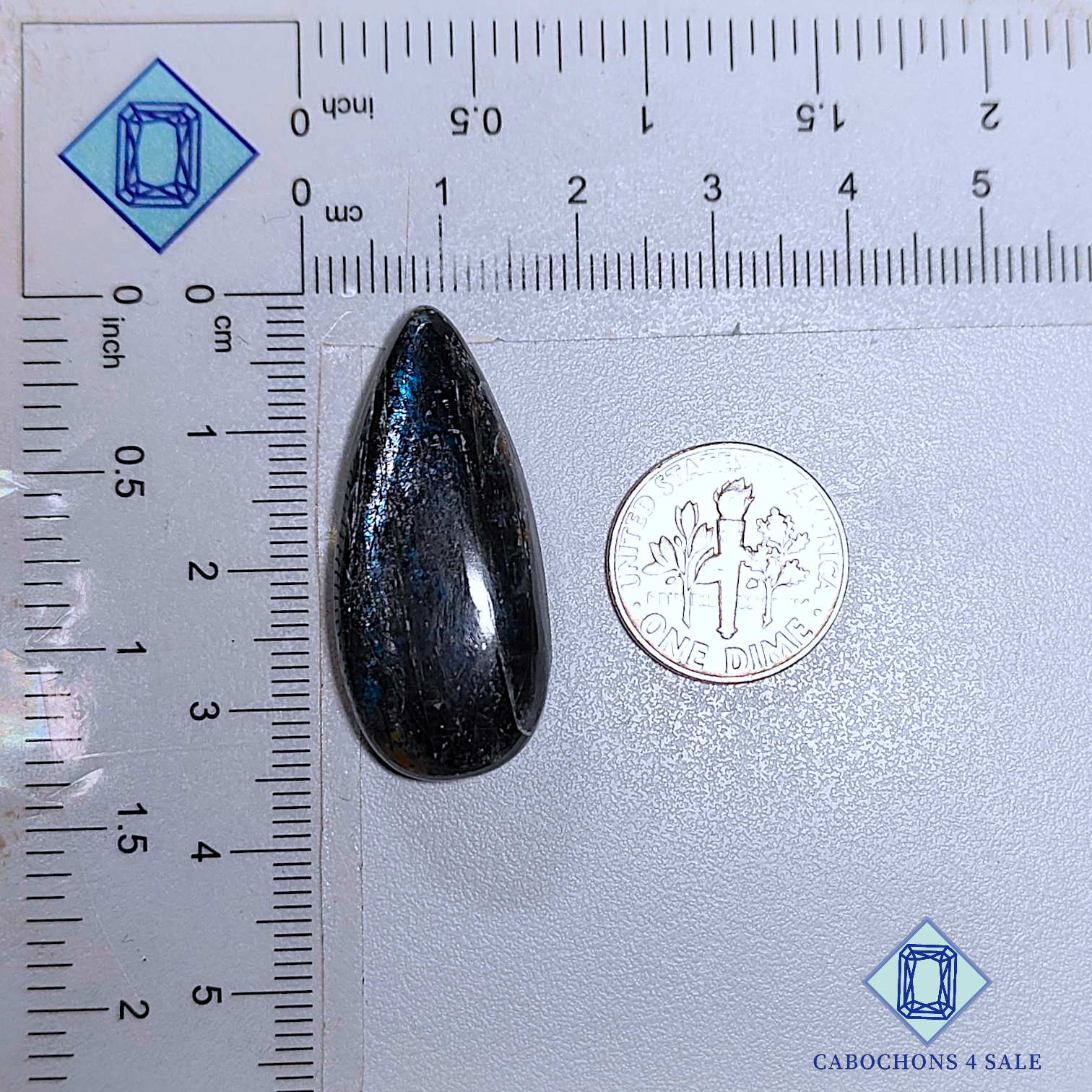 Swipe images to see stone with Dimension chart. This is a Blue Kyanite gemstone. The Product is a natural, Pear, Opaque. Blue Kyanite gemstone in Blue color with the size of 34*15*7mm. Clarity of this Blue Kyanite Piece is Opaque. The Product is available exactly same shown in the picture: 1 piece Pear Cabochons Blue Kyanite certified for the price listed above.