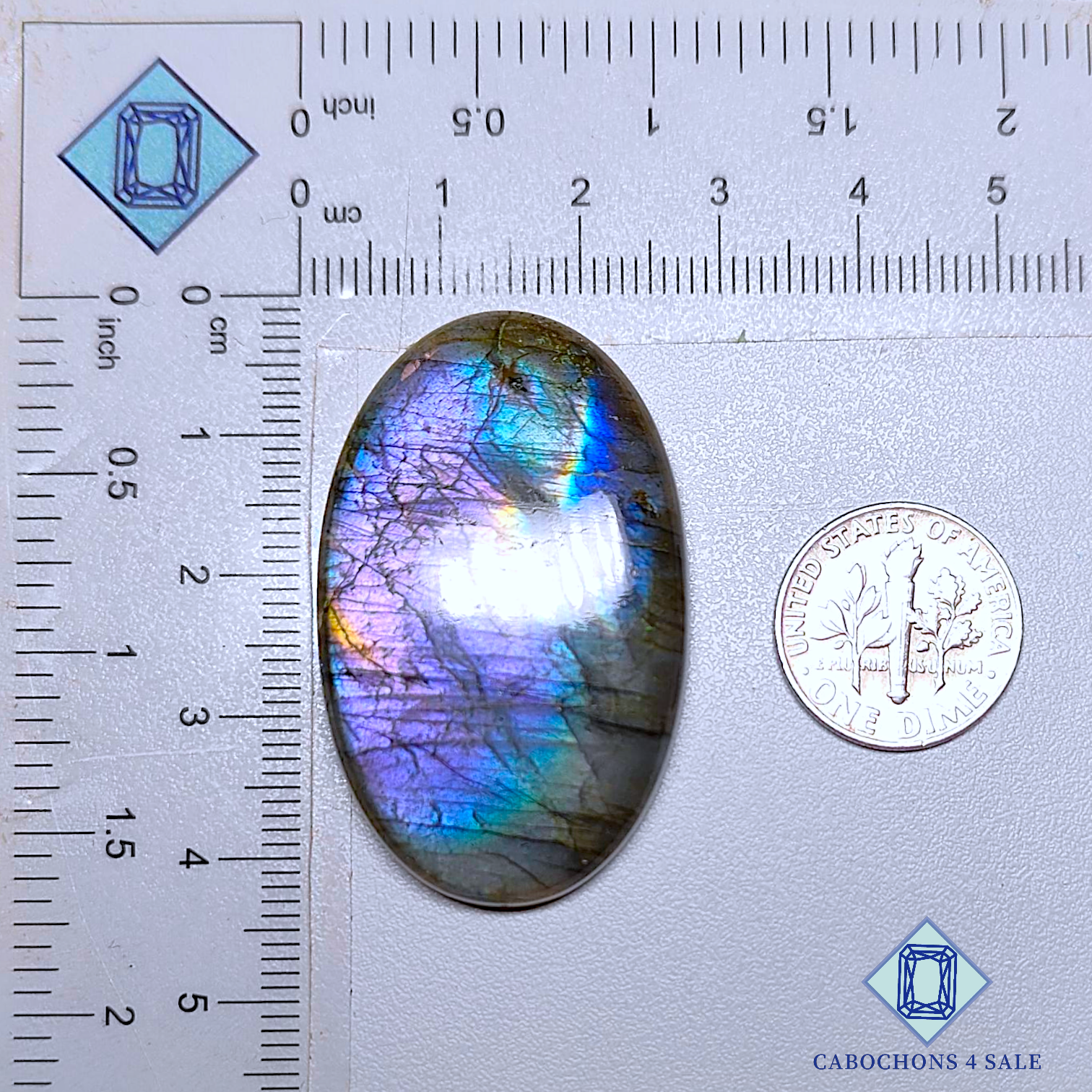 Swipe images to see stone with Dimension chart. This is a Blue Labradorite gemstone. The Product is a natural, Oval, Translucent. Blue Labradorite gemstone in Blue color with the size of 41*26*7mm. Clarity of this Blue Labradorite Piece is Translucent. The Product is available exactly same shown in the picture: 1 piece Oval Cabochons Blue Labradorite certified for the price listed above.