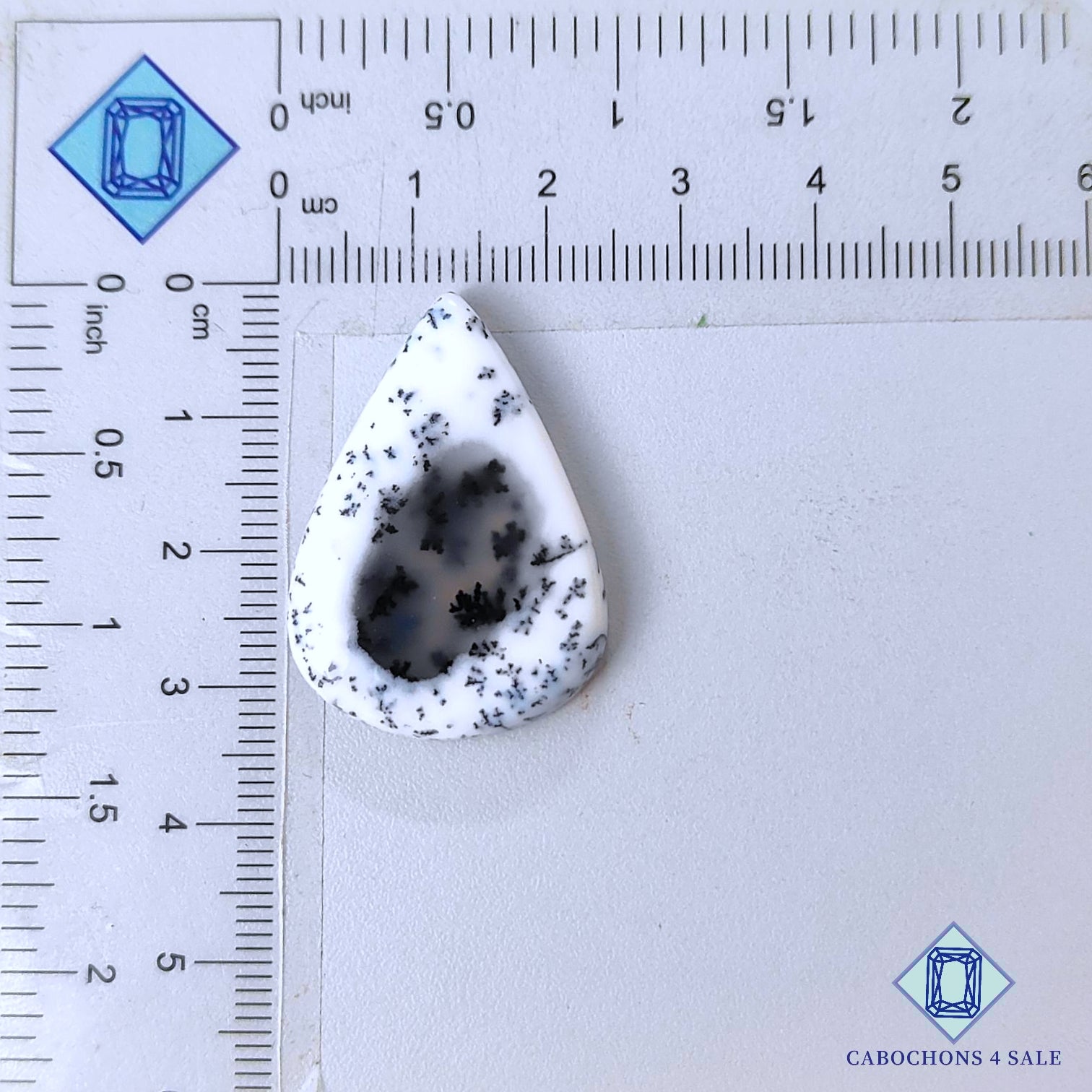 Swipe images to see stone with Dimension chart. This is a Dendrite Agate gemstone. The Product is a natural , Pear, Opaque. Dendrite Agate gemstone in White color with the size of 32*23*5mm. Clarity of this Dendrite Agate Piece is Opaque. The Product is available exactly same shown in the picture: 1 piece Pear Cabochons Dendrite Agate certified for the price listed above.