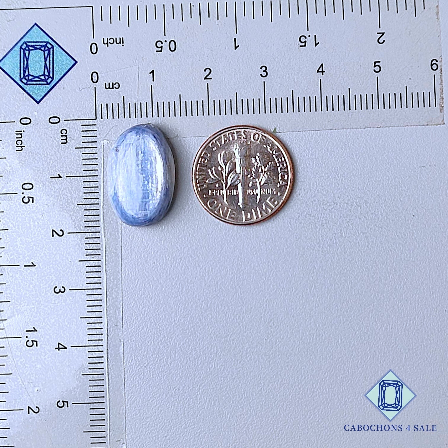 Swipe images to see stone with Dimension chart. This is a Flashy Blue Kyanite gemstone. The Product is a natural, Oval, Opaque. Flashy Blue Kyanite gemstone in Blue color with the size of 18*12*5mm. Clarity of this Flashy Blue Kyanite Piece is Opaque. The Product is available exactly same shown in the picture: 1 piece Oval Cabochons Flashy Blue Kyanite certified for the price listed above.