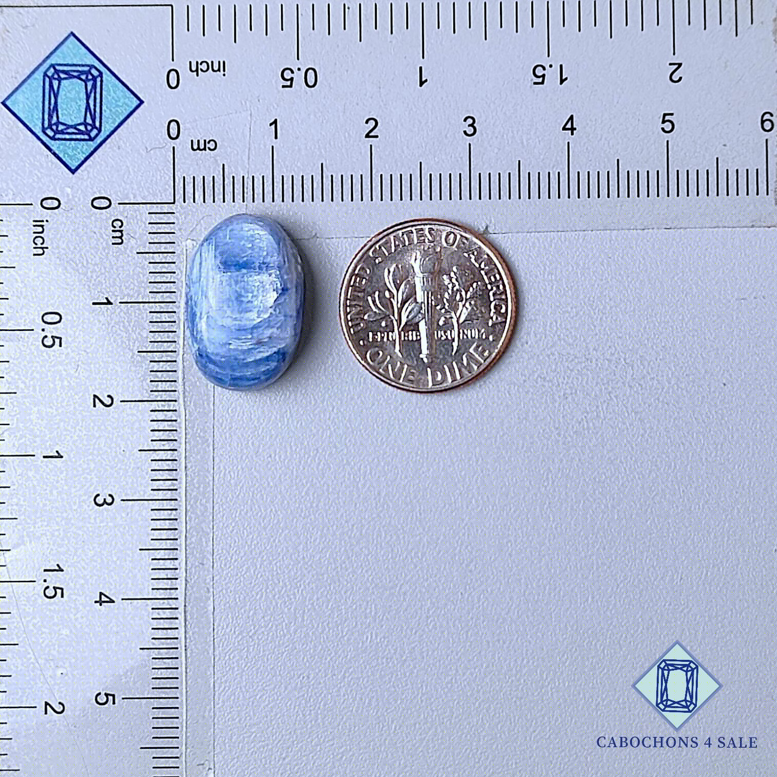 Swipe images to see stone with Dimension chart. This is a Flashy Blue Kyanite gemstone. The Product is a natural, Oval, Opaque. Flashy Blue Kyanite gemstone in Blue color with the size of 18*12*6mm. Clarity of this Flashy Blue Kyanite Piece is Opaque. The Product is available exactly same shown in the picture: 1 piece Oval Cabochons Flashy Blue Kyanite certified for the price listed above.