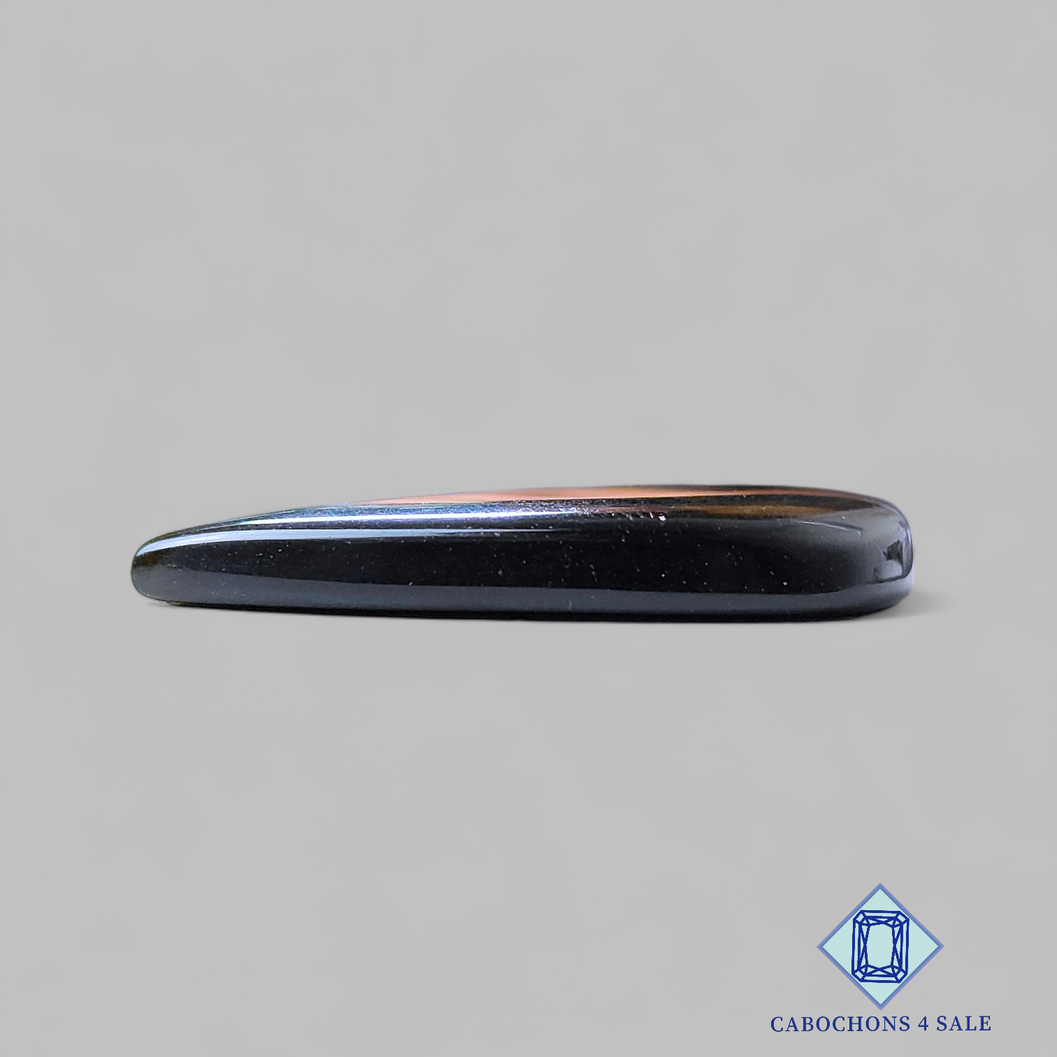 Swipe images to see stone with Dimension chart. This is a Golden Obsidian gemstone. The Product is a natural, Pear, Opaque. Golden Obsidian gemstone in Black color with the size of 42*25*5mm. Clarity of this Golden Obsidian Piece is Opaque. The Product is available exactly same shown in the picture: 1 piece Pear Cabochons Golden Obsidian certified for the price listed above.