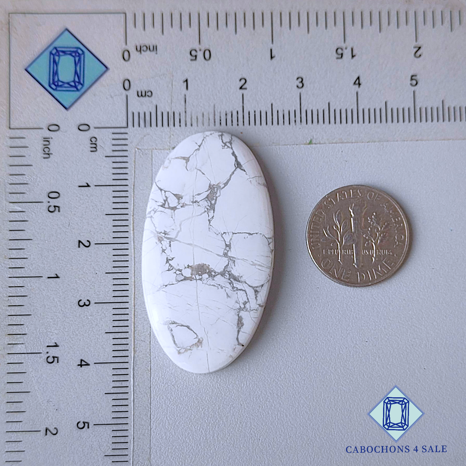 Swipe images to see stone with Dimension chart. This is a Howlite gemstone. The Product is a natural , Oval, Opaque. Howlite gemstone in White color with the size of 41*22*5mm. Clarity of this Howlite Piece is Opaque. The Product is available exactly same shown in the picture: 1 piece Oval Cabochons Howlite certified for the price listed above.