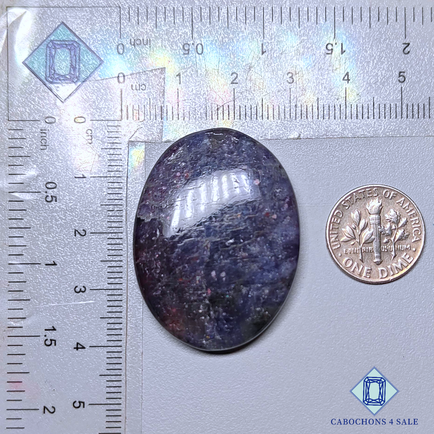 Swipe images to see stone with Dimension chart. This is a Iolite Sunstone gemstone. The Product is a natural , Oval, Translucent. Iolite Sunstone gemstone in Blue color with the size of 39*29*7mm. Clarity of this Iolite Sunstone Piece is Translucent. The Product is available exactly same shown in the picture: 1 piece Oval Cabochons Iolite Sunstone certified for the price listed above.