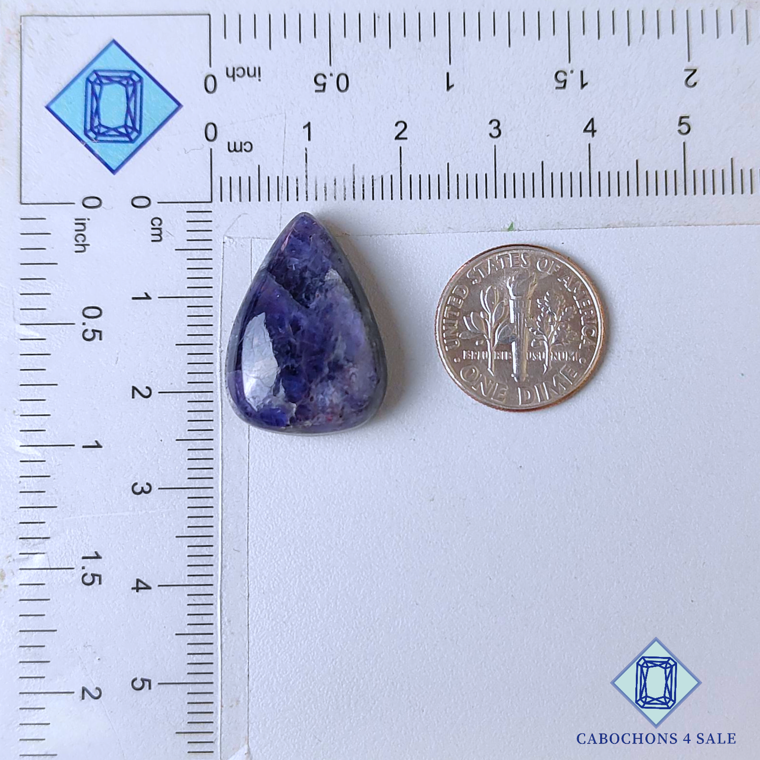 Swipe images to see stone with Dimension chart. This is a Iolite Sunstone gemstone. The Product is a natural , Pear, Translucent. Iolite Sunstone gemstone in Blue color with the  size of 23*16*7mm. Clarity of this Iolite Sunstone Piece is  Translucent. The Product is available exactly same shown in the picture: 1 piece Pear Cabochons Iolite Sunstone certified for the price listed above.