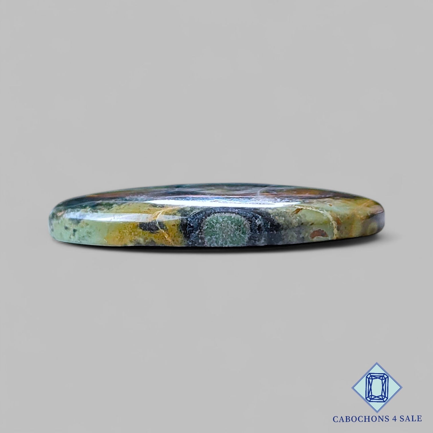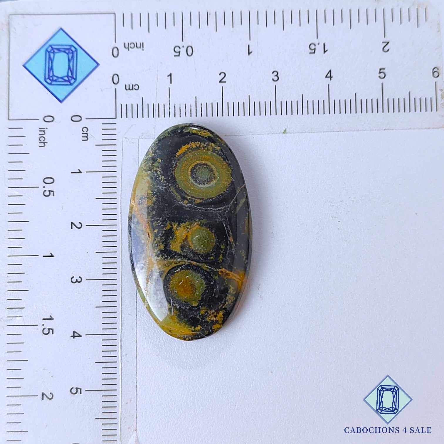 Swipe images to see stone with Dimension chart. This is a Kambaba Jasper gemstone. The Product is a natural , Oval, Opaque. Kambaba Jasper gemstone in Black color with the size of 39*22*5mm. Clarity of this Kambaba Jasper Piece is Opaque. The Product is available exactly same shown in the picture: 1 piece Oval Cabochons Kambaba Jasper certified for the price listed above.