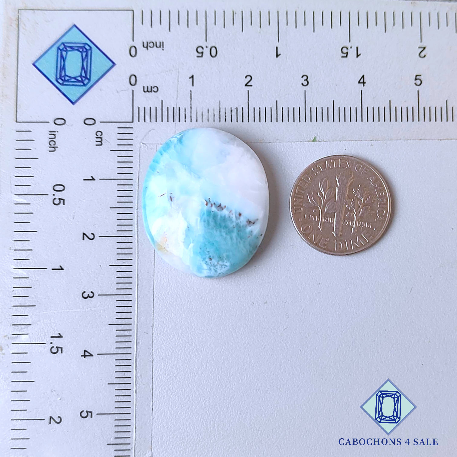 Swipe images to see stone with Dimension chart. This is a Larimar gemstone. The Product is a natural , Oval, Opaque. Larimar gemstone in Blue color with the size of 26*21*6mm. Clarity of this Larimar Piece is Opaque. The Product is available exactly same shown in the picture: 1 piece Oval Cabochons Larimar certified for the price listed above.