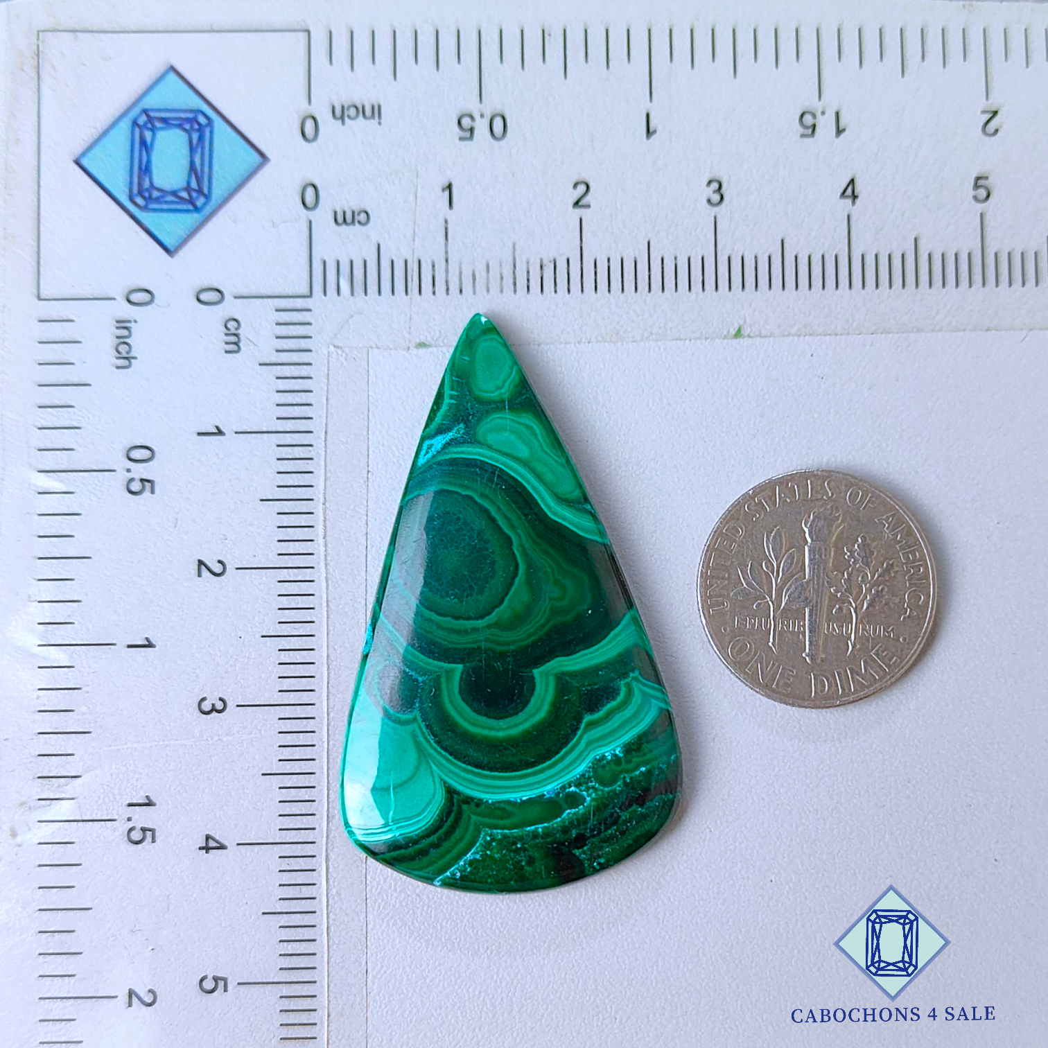 Swipe images to see stone with Dimension chart. This is a Malachite gemstone. The Product is a natural, Pear, Opaque. Malachite gemstone in Green color with the size of 42*25*3mm. Clarity of this Malachite Piece is Opaque. The Product is available exactly same shown in the picture: 1 piece Pear Cabochons Malachite certified for the price listed above.