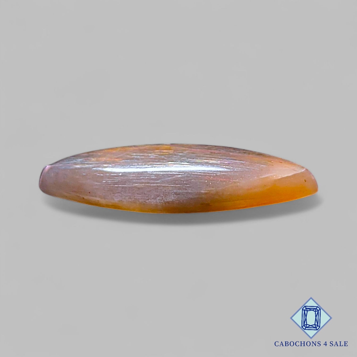 Swipe images to see stone with Dimension chart. This is a Meteor Shower Rainbow Lattice Sunstone gemstone. The Product is a natural , Marquise, Translucent. Meteor Shower Rainbow Lattice Sunstone gemstone in Black color with the size of 26*12*5mm. Clarity of this Meteor Shower Rainbow Lattice Sunstone Piece is Translucent. The Product is available exactly same shown in the picture: 1 piece Marquise Cabochons Meteor Shower Rainbow Lattice Sunstone certified for the price listed above.