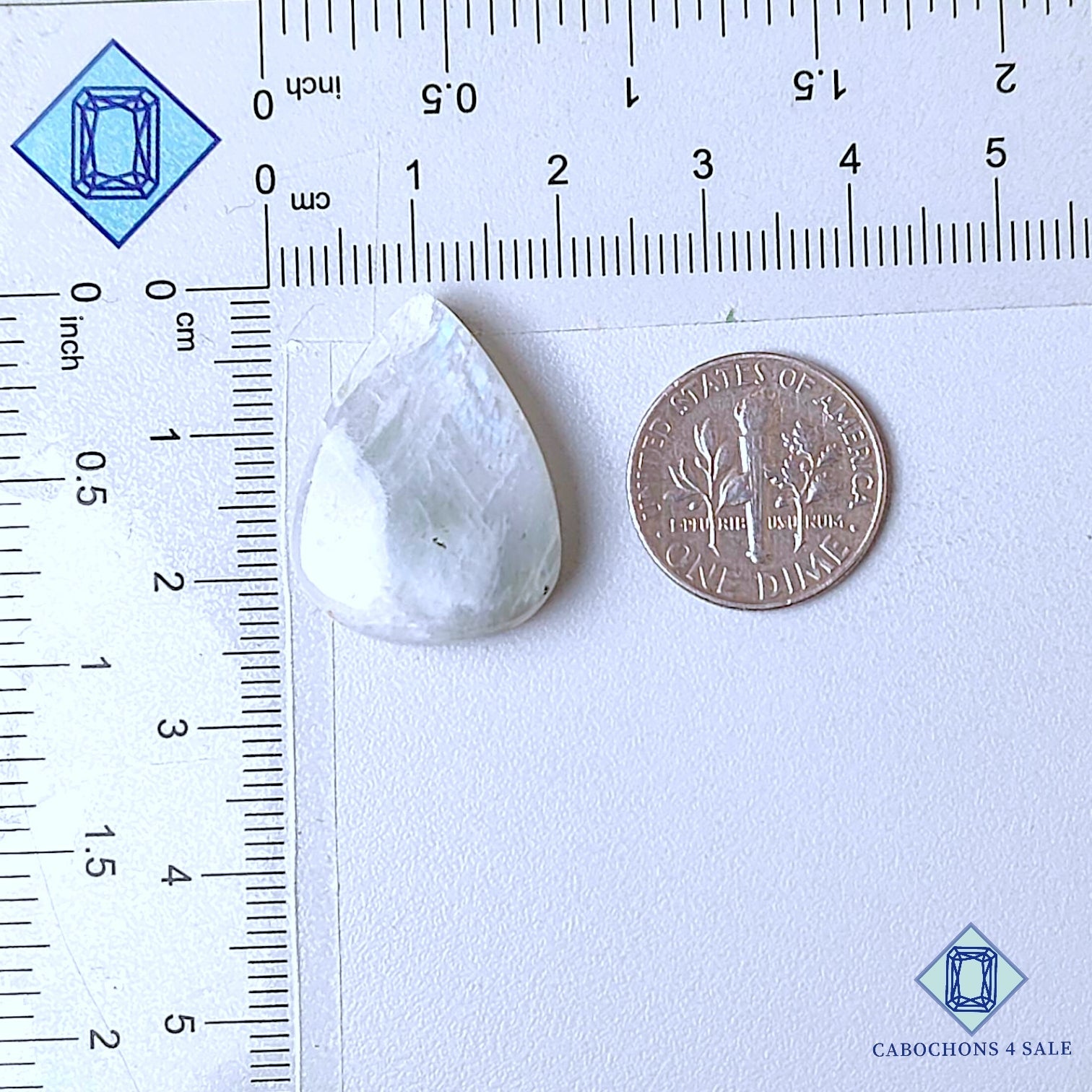 Swipe images to see stone with Dimension chart. This is a Moonstone gemstone. The Product is a natural , Pear, Translucent. Moonstone gemstone in White color with the size of 23*18*7mm. Clarity of this Moonstone Piece is Translucent. The Product is available exactly same shown in the picture: 1 piece Pear Cabochons Moonstone certified for the price listed above.