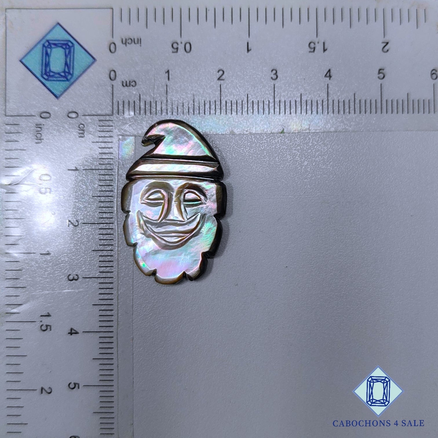 Swipe images to see stone with Dimension chart. This is a Mother of Pearl gemstone. The Product is a natural , Fancy, Translucent. Mother of Pearl gemstone in White color with the size of 30*19*4mm. Clarity of this Mother of Pearl Piece is Translucent. The Product is available exactly same shown in the picture: 1 piece Fancy Carvings Mother of Pearl certified for the price listed above.