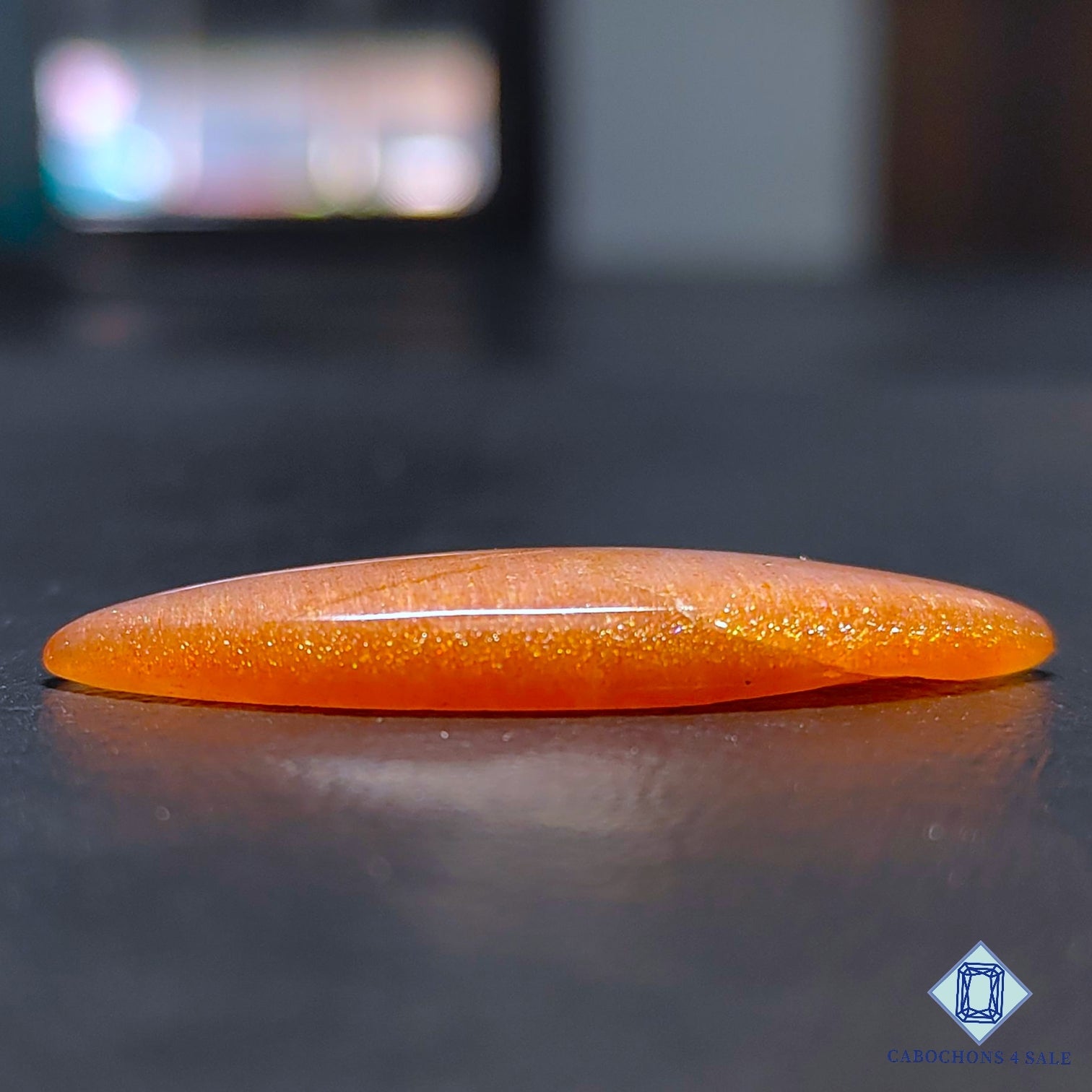 This is a Peach Moonstone with Sunstone gemstone. The Product is a natural , Marquise, Translucent. Peach Moonstone with Sunstone gemstone in Brown color with the size of 38*14*5mm. Clarity of this Peach Moonstone with Sunstone Piece is Translucent. The Product is available exactly same shown in the picture: 1 piece Marquise Cabochons Peach Moonstone with Sunstone certified for the price listed above.