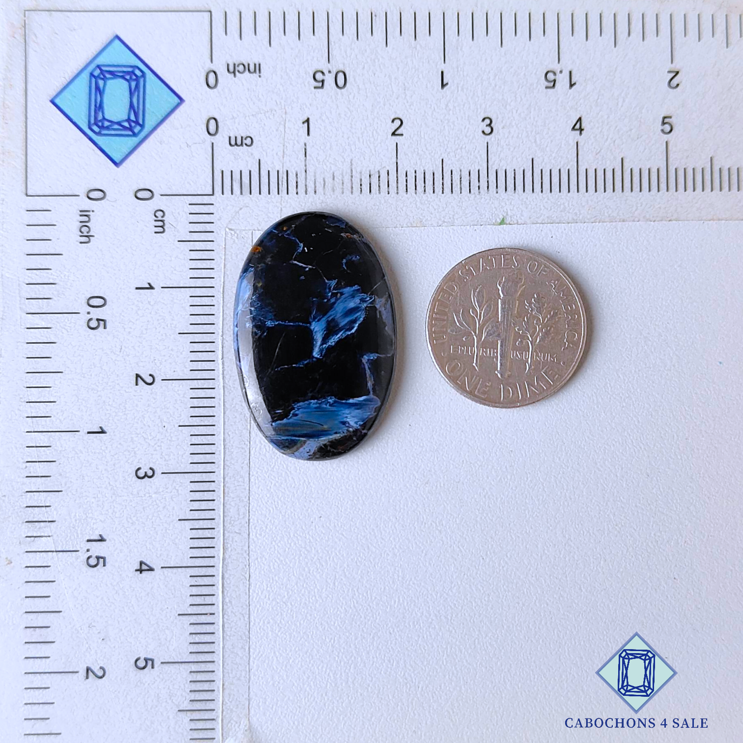 Swipe images to see stone with Dimension chart. This is a Pietersite gemstone. The Product is a natural , Oval, Opaque. Pietersite gemstone in Blue color with the size of 27*17*3mm. Clarity of this Pietersite Piece is Opaque. The Product is available exactly same shown in the picture: 1 piece Oval Cabochons Pietersite certified for the price listed above.