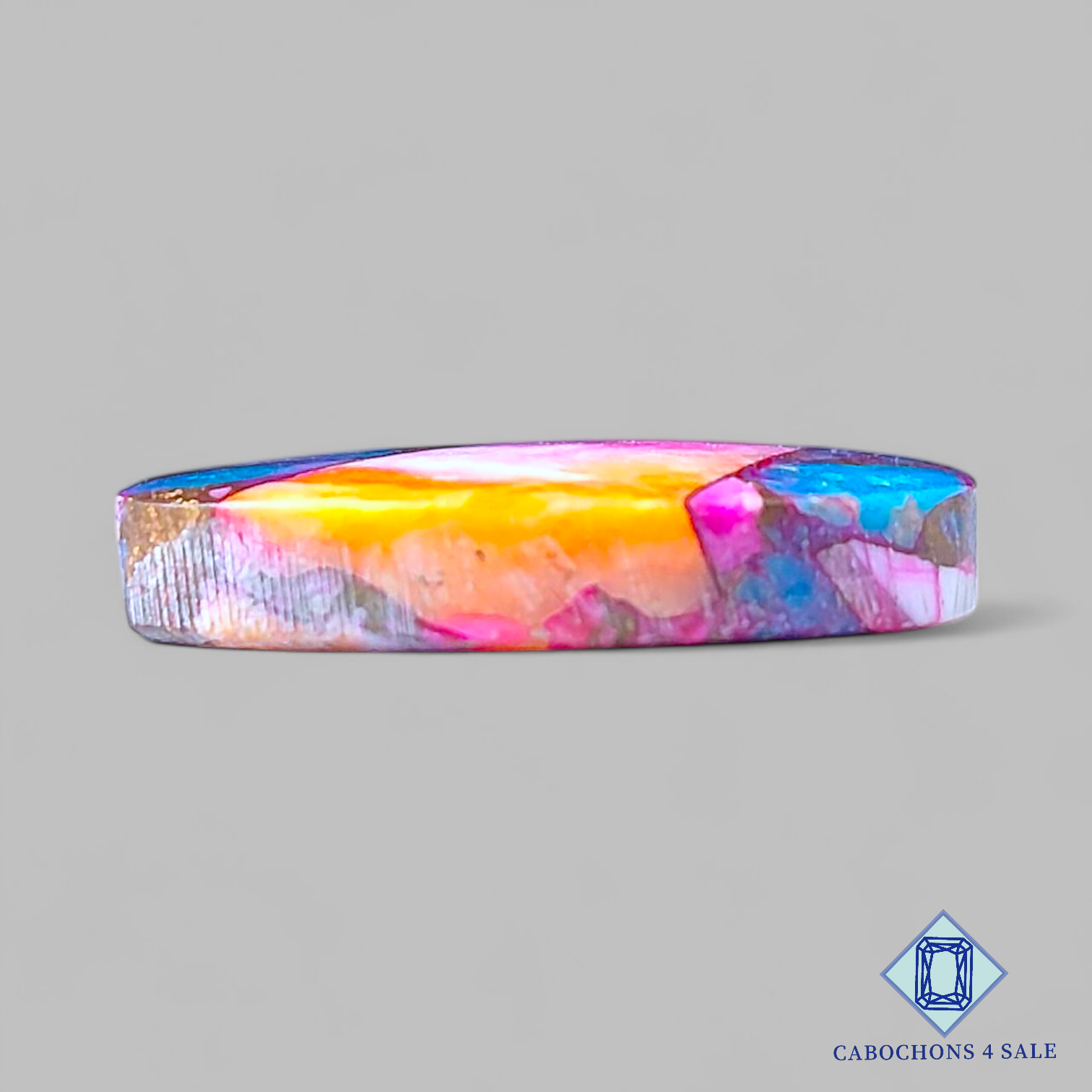 Swipe images to see stone with Dimension chart. This is a Purple Mohave Turquoise gemstone. The Product is a natural , Oval, Opaque. Purple Mohave Turquoise gemstone in Purple color with the size of 21*12*4mm. Clarity of this Purple Mohave Turquoise Piece is Opaque. The Product is available exactly same shown in the picture: 1 piece Oval Cabochons Purple Mohave Turquoise certified for the price listed above.