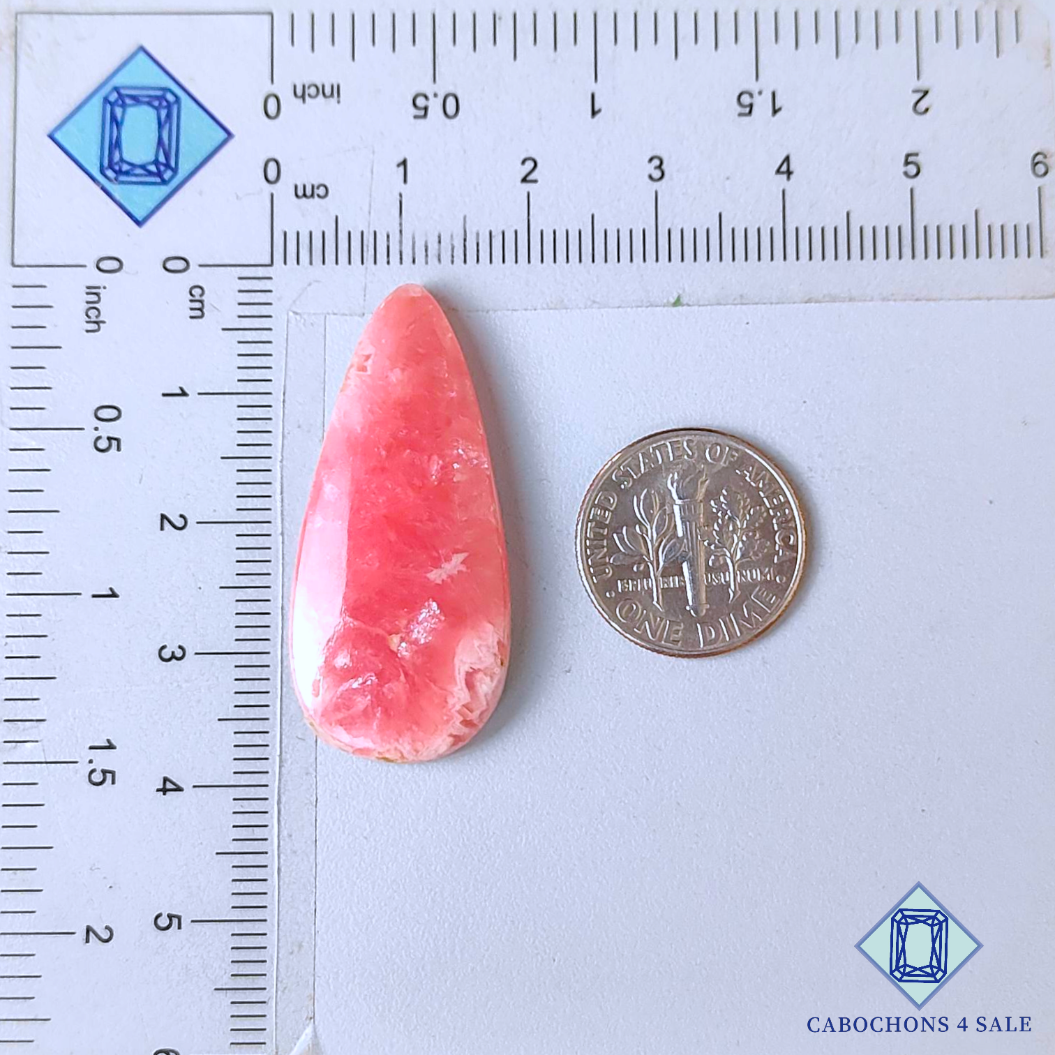 Swipe images to see stone with Dimension chart. This is a Rhodochrosite gemstone. The Product is a natural , Pear, Translucent. Rhodochrosite gemstone in Pink color with the size of 31*16*5mm. Clarity of this Rhodochrosite Piece is Translucent. The Product is available exactly same shown in the picture: 1 piece Pear Cabochons Rhodochrosite certified for the price listed above.