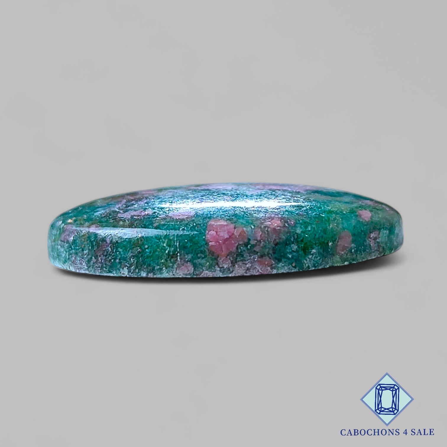 Swipe images to see stone with Dimension chart. This is a Ruby Kyanite gemstone. The Product is a natural , Oval, Opaque. Ruby Kyanite gemstone in Green color with the size of 30*20*5mm. Clarity of this Ruby Kyanite Piece is Opaque. The Product is available exactly same shown in the picture: 1 piece Oval Cabochons Ruby Kyanite certified for the price listed above.