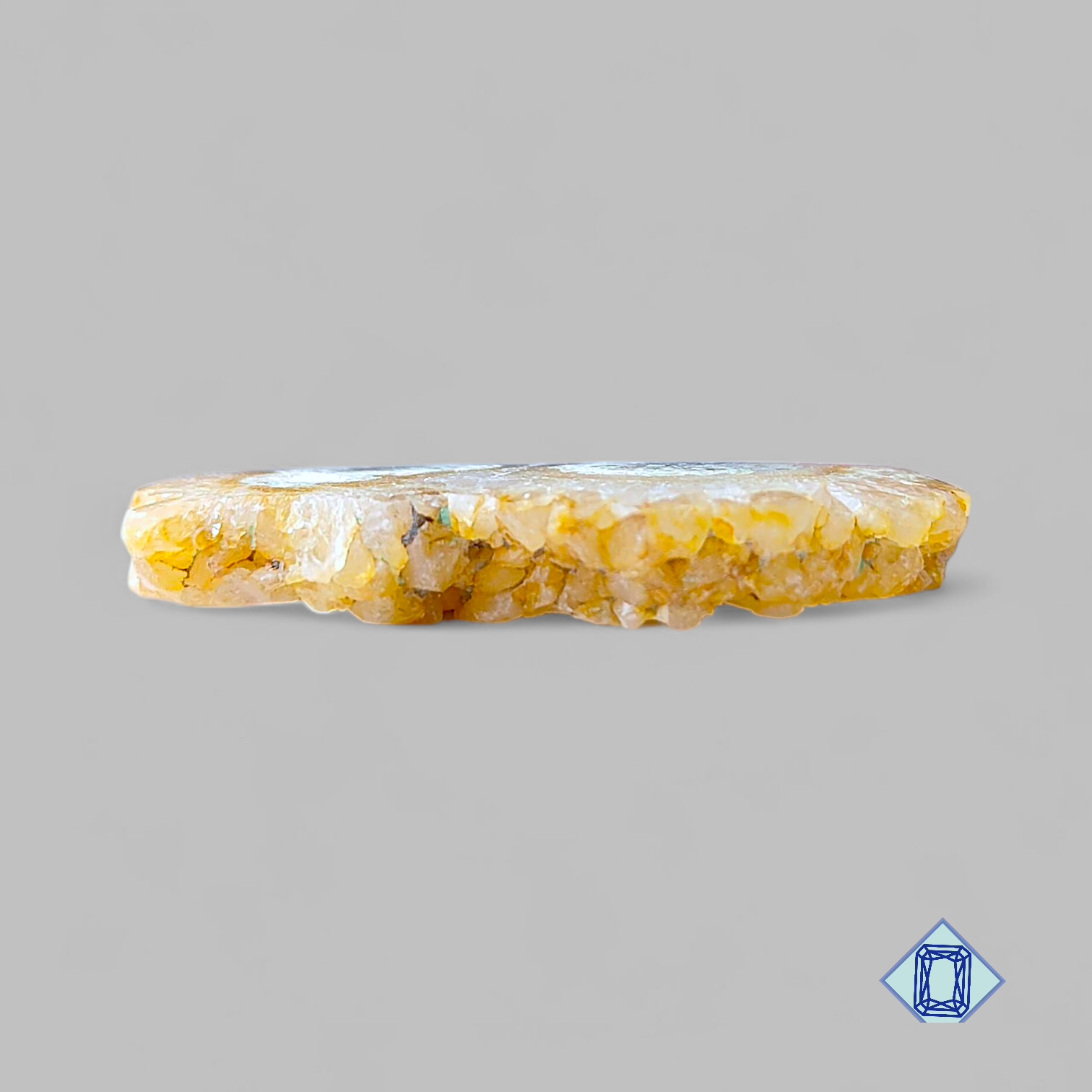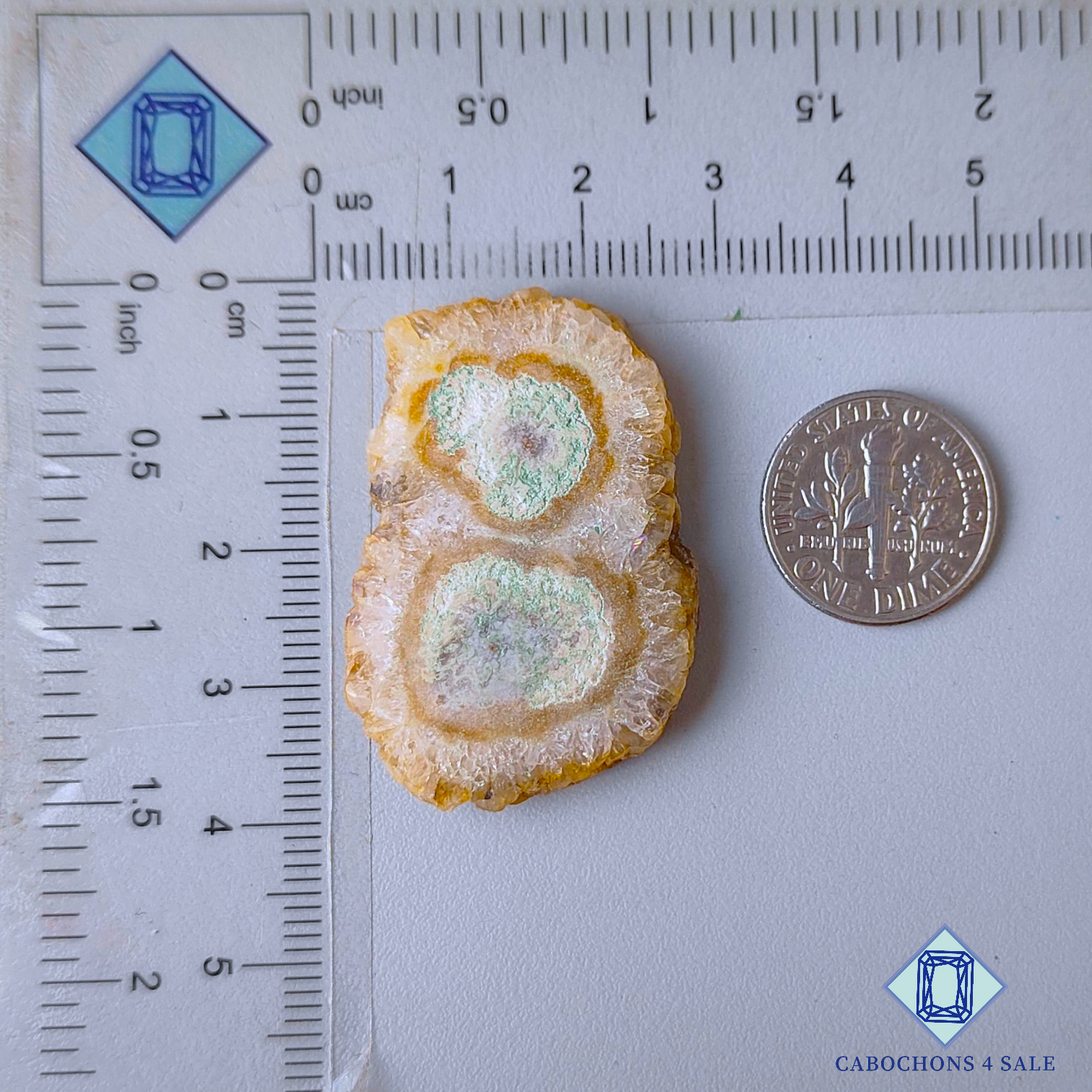 Swipe images to see stone with Dimension chart. This is a White Solar Quartz gemstone. The Product is a natural , Fancy, Opaque. White Solar Quartz gemstone in Brown color with the size of 38*25*5mm. Clarity of this White Solar Quartz Piece is Opaque. The Product is available exactly same shown in the picture: 1 piece Fancy Druzy White Solar Quartz certified for the price listed above.