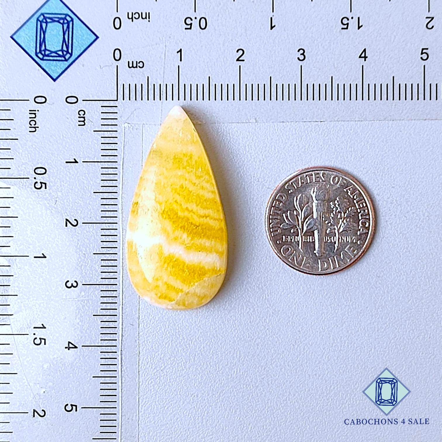 Swipe images to see stone with Dimension chart. This is a Yellow Calcite gemstone. The Product is a natural, Pear, Translucent. Yellow Calcite gemstone in Yellow color with the size of 33*16*7mm. Clarity of this Yellow Calcite Piece is Translucent. The Product is available exactly same shown in the picture: 1 piece Pear Cabochons Yellow Calcite certified for the price listed above.