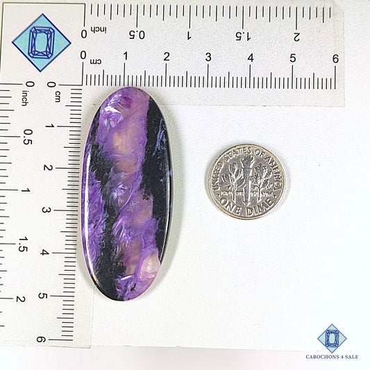 Cabujones ovalados de piedra preciosa de charoita natural de 50 x 21 x 4 mm, procedentes de Rusia, disponibles para la venta.